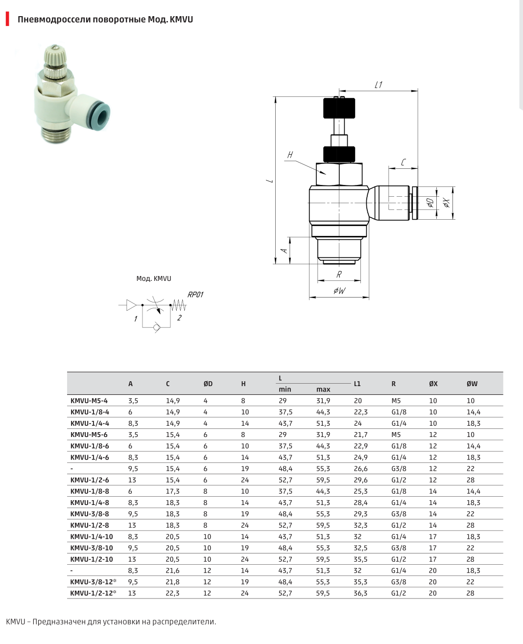 Пневмодроссель KMCO без обратного клапана Камоцци