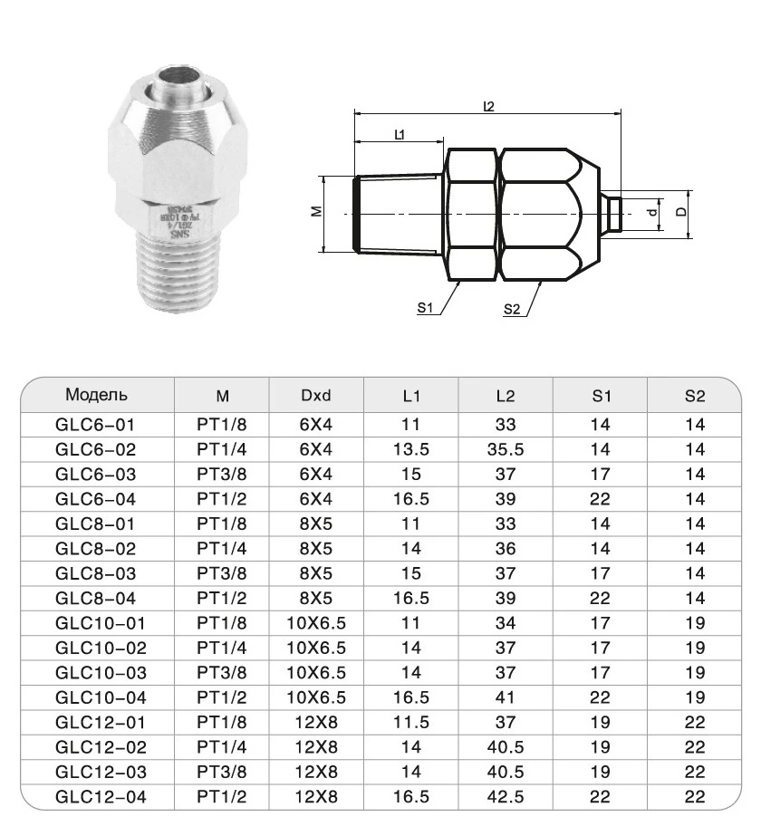 GLC8-02 Фитинг пневматический из нержавеющей стали