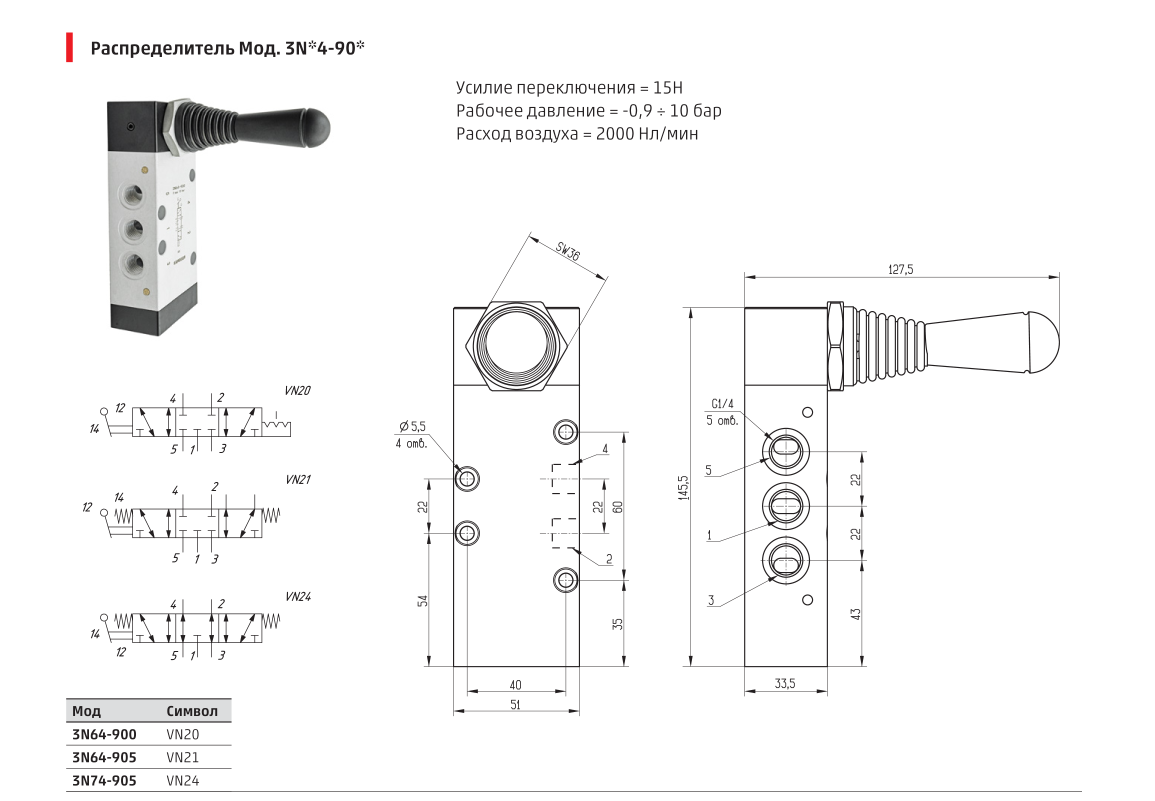 Усилие переключения = 16Н