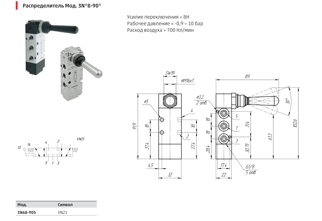 Усилие переключения = 8Н