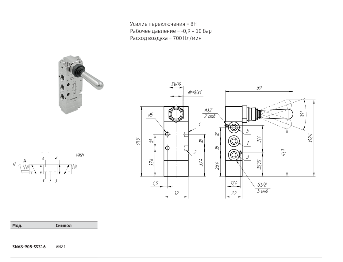 SS316 = корпус, золотник – нержавеющая сталь, уплотнения – NBR