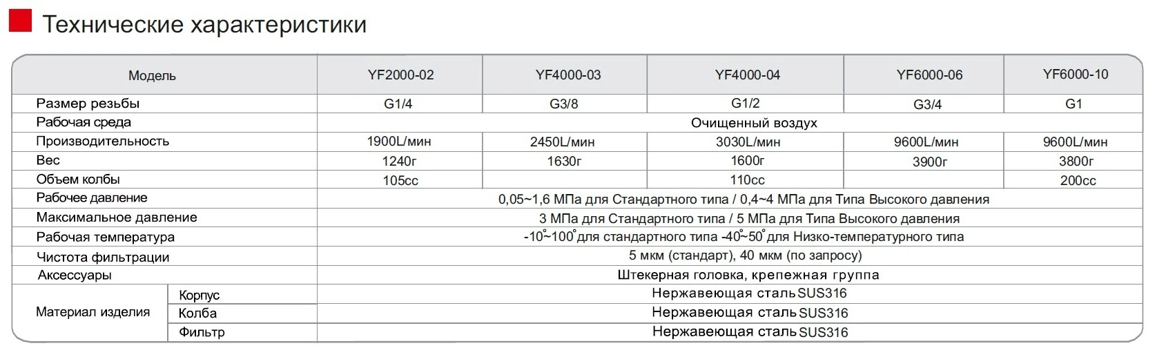 YF6000-06 Фильтр пневматический Нержавеющая сталь