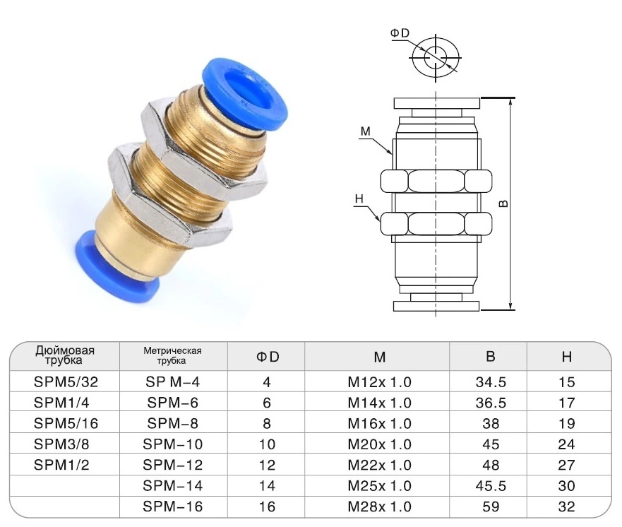 Серия SPM Фитинги цанговые панельного монтажа/ самозажимные SNS pneumatic