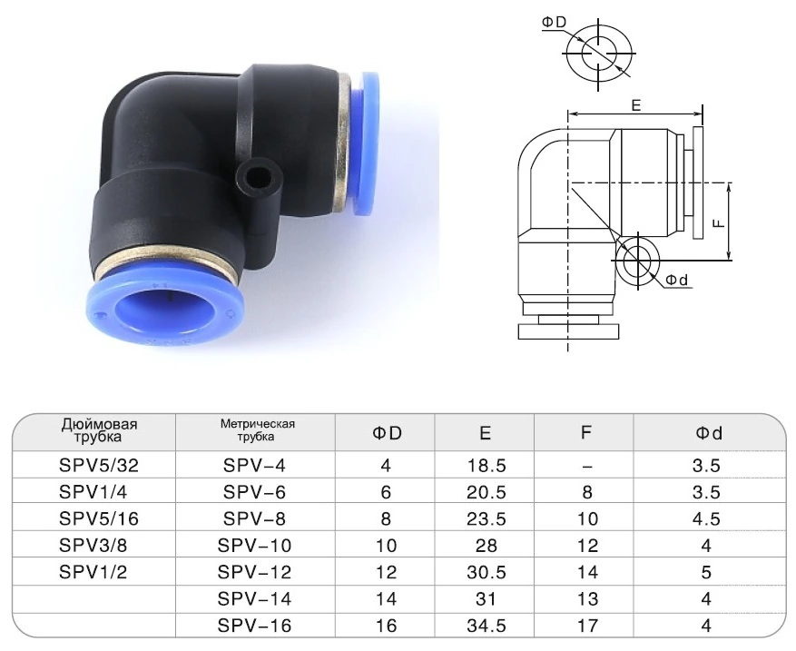 SNS Pneumatic Угловые Цанговые фитинги Серия SPV