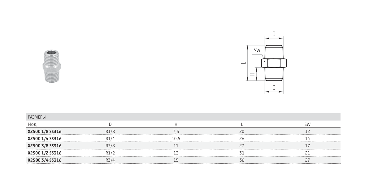 Фитинг прямой с наружной резьбой Мод. X2500 Камоцци Пневматика